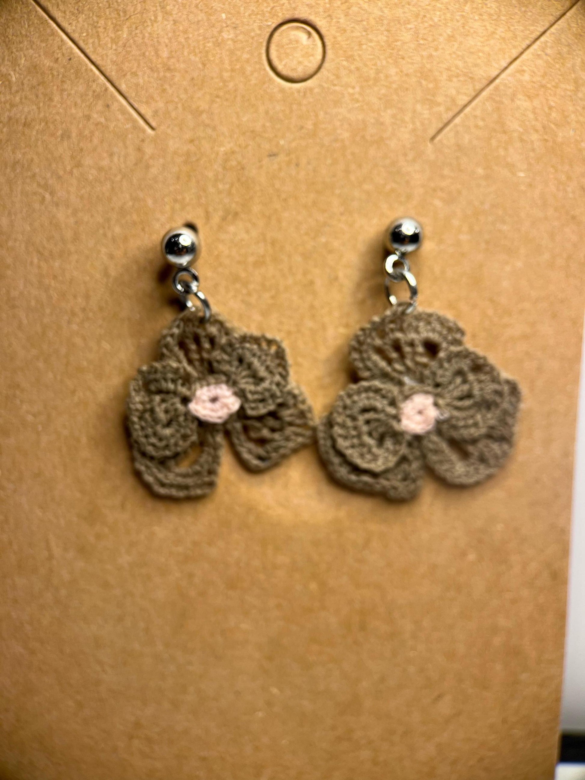 Elegant and understated, these micro crochet Orchid earrings capture the delicate beauty of the flower in warm, natural tones. Each petal is carefully crocheted by hand from fine polyester thread in earthy taupe with a soft blush pink center — a subtle, timeless color combination that complements any outfit. The flowers hang from hypoallergenic stainless steel stud fittings, creating a comfortable and lightweight accessory that’s perfect for everyday wear or a refined handmade gift. Their organic texture and soft sheen make them ideal for lovers of botanical or minimalist jewelry.